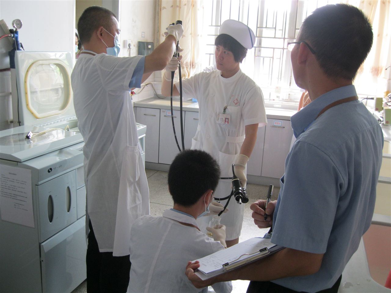 据介绍,本次监测以输液室、肠道门诊、发热门诊、口腔科等为重点科室,主要是现场进行紫外线灯照度监测,同时采集室内空气、物体表面、医护人员手、使用中的消毒液、口腔用水等监测样品,进行细菌菌落总数、金黄色葡萄球菌、铜绿假单胞菌等项目的检验工作。